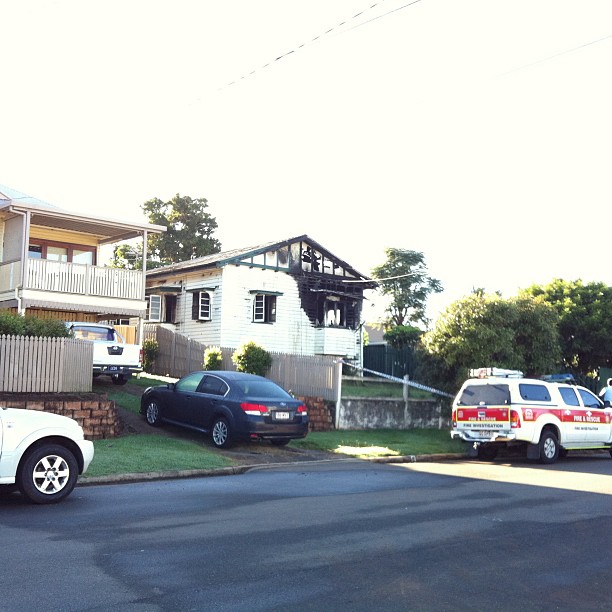 I took this shot later in the morning. The fire damage is quite obvious from the front. The police and fire investigation unit were there for most of the day too.